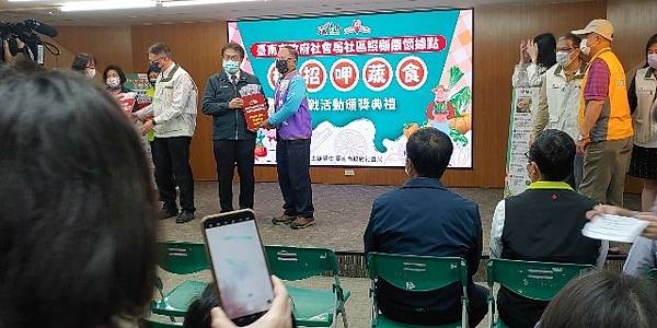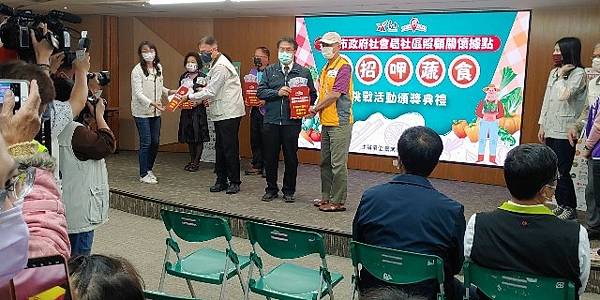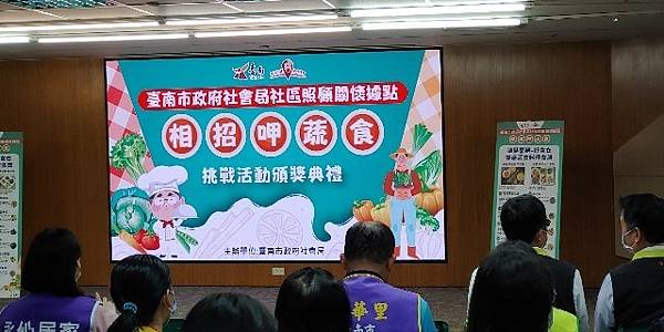 【柿子日報記者李玲/台南報導】台南市政府以行動響應「低碳環保愛地球」理念,推廣蔬食餐並讓社區照顧關懷據點長輩吃得營養又健康,為期一個月的「相招呷蔬食」共餐競賽活動,今(6)日由台南市長黃偉哲親自頒獎給17個獲獎單位,市議員沈震東、周嘉韋也到場關心市府推廣低碳台南政策的成果。
