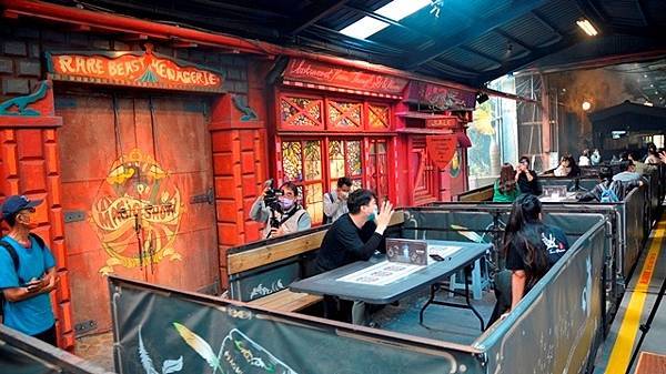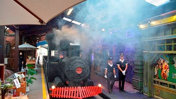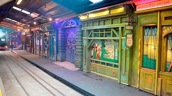 慶典期間車站月台邊有多家古老的魔法商店,販售各種魔幻國度的民生用品,有台南一推出即秒殺的法式甜點「露露麗麗」推出魔法限定甜點,以及多家插畫小誌品牌,以魔法元素創作全新的視覺作品。在魔法列車上打造一間魔幻車廂,結合甜點套餐隨著列車出發,想體驗魔幻車廂甜點套餐的朋友,可要追逐著列車才能品嘗得到!