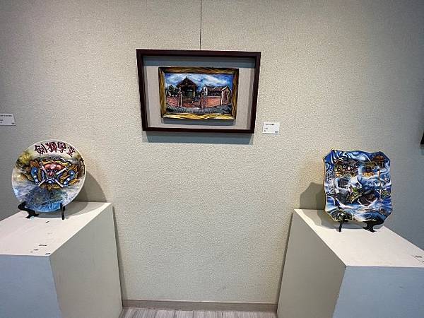 兩人針對【福爾摩莎】作品表示,是將1624年荷蘭人在安平設立洋行、繁華交易的畫面,以兩片瓷磚各別呈現,組合起來宛如拼湊起不同風華的安平歷史樣貌;【大廟經濟】作品,則以安平開臺天后宮為中心,將安平今日的代表性建築、街景與小巷,唯妙唯肖地立體呈現在瓷盤上,就連酒店也巧妙佇立其中。