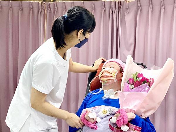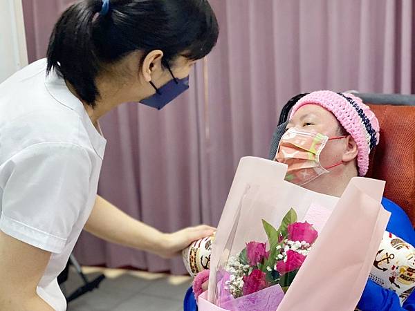 【柿子日報記者李玲/台南報導】「因為疫情的關係,我已經3年沒辦法進去院內看我太太了,這束花代表我的心,希望她能感受的到。」2月14日是西洋情人節,創世台南院護理人員化身為愛神,代替院民家屬林先生送花給妻子,傳達因疫情無法相見的思念與愛意。