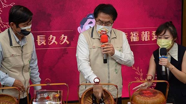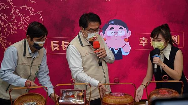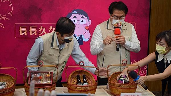 黃偉哲也現場開箱公布第一波要送給今年2月14日在臺南登記結婚的在地好禮「但願與子共長久」,包含象徵長長久久的「大腸包小腸+烏魚子手工皂」禮盒及「臺南400精釀啤酒」、象徵幸福報稻的「無米樂小花磚(囍紅)」、以及蛋願人長久的「四囍蛋禮」等臺南在地好物;後續3月14日、5月20日及8月22日的結婚好禮,也將陸續公布。此外,預約申請2月14日登記結婚的佳偶,還有機會獲得黃市長當場致贈結婚驚喜禮物。