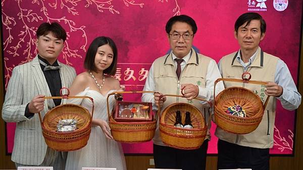 【柿子日報記者李玲/台南報導】臺南身為適合戀愛、結婚及生活的全糖甜蜜城市,南市府觀旅局在情人節前夕推出3大主題共11條甜蜜告白路線,希望大家可以到臺南告白、求婚成功並且養育子女、攜手偕老。因此今(10)日特別舉辦記者會,由臺南市長黃偉哲宣布準備臺南在地的結婚好禮,送給今年在2月14日(西洋情人節)、3月14日(白色情人節)、5月20日(象徵我愛你)、8月22日(七夕情人節)在臺南登記結婚的佳偶們。今日現場還請來一對新人,由黃偉哲市長贈送剛開箱、最熱騰騰的結婚好禮,新人收到結婚好禮跟受到市長祝福,笑的非常甜蜜。