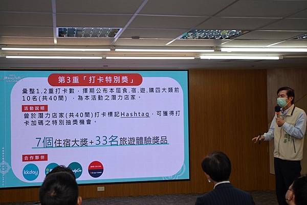 台南市市長黃偉哲表示,「2023潮Way台南」系列活動將持續至4月底,共分三部分,第一重為「精選創作獎」,將入選40位部落客,完成創作得5000元獎勵金,歡迎有興趣的部落客請於2/22前盡速報名;接著宣布第二重為「全民創作獎」,遊客於活動期間(2/16-4/30)至所推薦的台南店家打卡發布公開貼文,標記指定Hashtag,投稿於活動官網,即可抽住宿大獎(8名)及旅遊體驗產品(14名);最後,第三重為「打卡特別獎」,台南市副市長葉澤山表示,主辦單位將擇期公布本次活動最具潛力之店家,於指定期間內打卡標記,即可抽加碼特別獎,共計住宿大獎(7名)及旅遊體驗產品(33名),歡迎大家持續鎖定活動官網,趕快來參加!