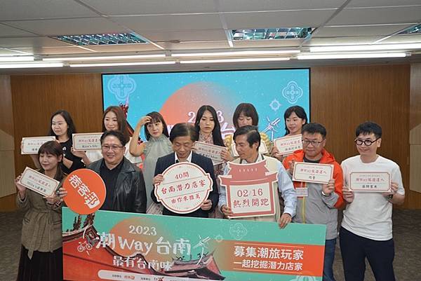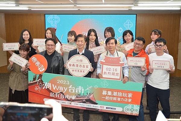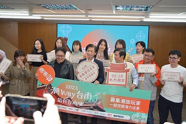 【柿子日報記者李玲/台南報導】臺南市政府觀光旅遊局與台灣最大部落格平台「痞客邦」合作,宣布將持續透過自媒體和社群平台的力量,共同推廣「潮Way台南」觀光品牌。今(16日)「2023潮Way台南」活動記者會上,由台南市副市長葉澤山及本次合作電商夥伴代表(包含:KKday、ReadyGo、酷派、AVIS艾維士租車、Budget百捷租車),攜手多位知名部落客一同來宣布活動開跑,號召全民尋找潛力店家,活動好禮三重送。