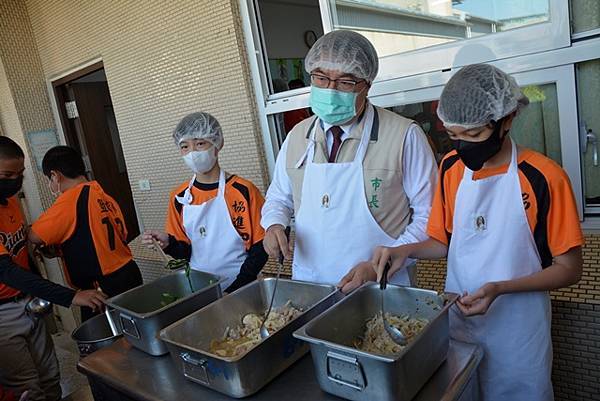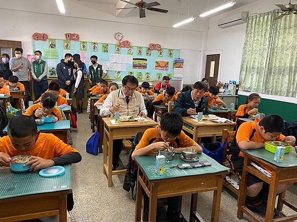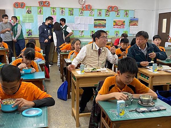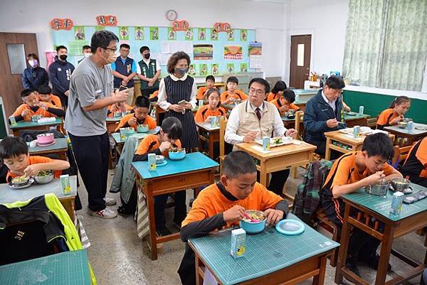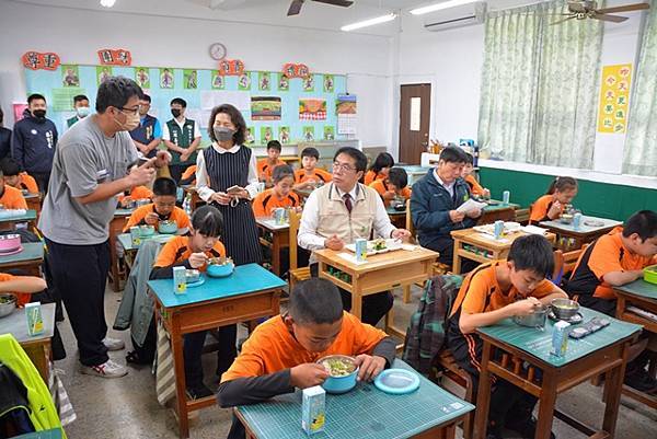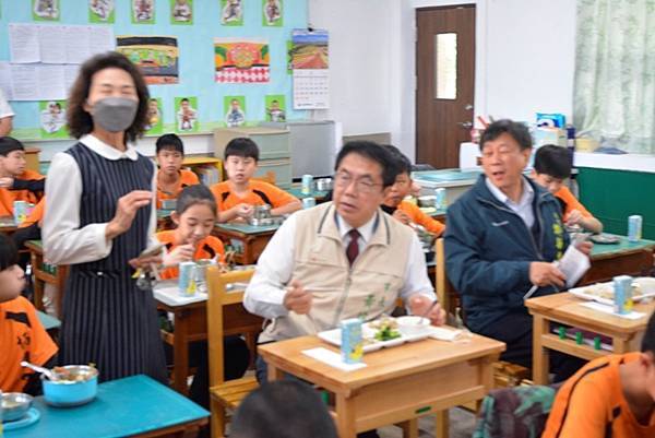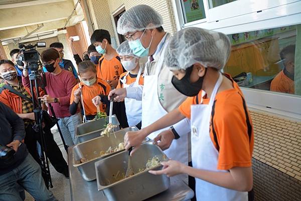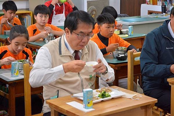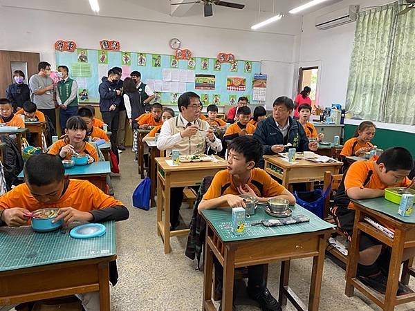 黃偉哲今日視察營養午餐,不僅穿上圍裙親自幫同學打菜,也到教室裡與同學們一同品嘗午餐,而學生們也很興奮能與市長同席用餐。市長也當場詢問學生們是否喜歡營養午餐的菜色和口味,許多學生都表示,學校的營養午餐很美味,每一餐的飯菜都會吃光光,也希望能繼續維持,讓他們每天都能吃到好吃的午餐;黃偉哲也說希望同學們能多吃一點,更表示台南市的營養午餐沒有最好,只會更好,市府未來也會投入更多資源,讓學生、老師都能吃得開心。