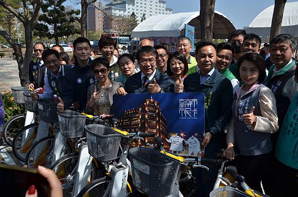 【柿子日報記者李玲/台南報導】台南市民期待的公共自行車YouBike 2.0系統,今(2/23)日在台南市政府旁西拉雅廣場舉行啟用儀式,共計77站、800輛自行車投入服務,於中午12時正式啟用,由微笑單車股份有限公司負責營運,並推出「FB美照大募集」、「月抽5000購物金」等抽獎活動,歡迎民眾踴躍參加。
