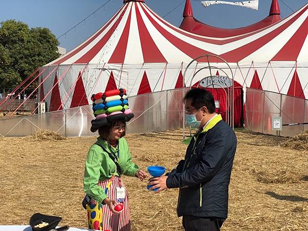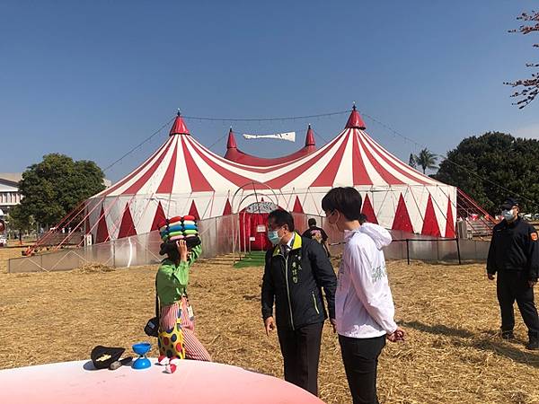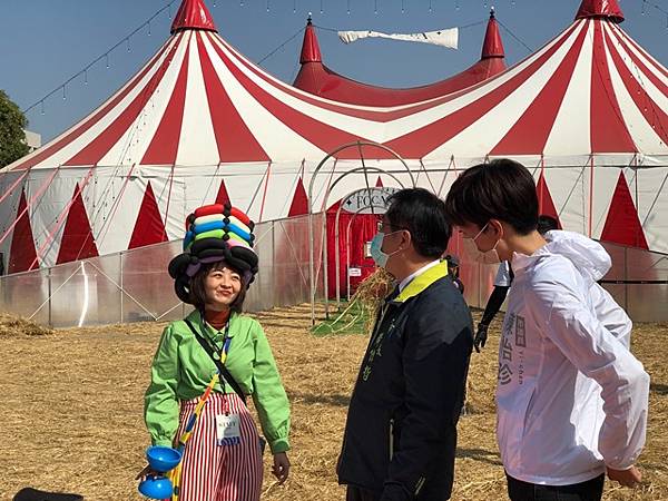【柿子日報記者李玲/台南報導】第一屆《FOCASA馬戲藝術節》於2月22至28日在台南水交社文化園區登場,有來自8個國家、30個馬戲團隊演出,2月25日假日開村吸引超過萬人湧入,台南市長黃偉哲昨(26)日也快閃馬戲糖果村化身一日村長,今(27)日則陪同文化部長史哲走訪馬戲藝術節園區,市議員陳怡珍也一同到場參訪。