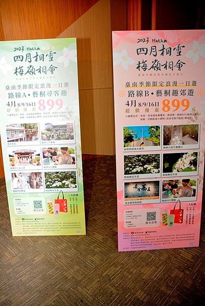 台南市政府客家事務委員會表示,今年推出的兩條桐花小旅行遊程,結合了賞桐和歷史文化的導覽,並將於4月8、9、16日陸續出團。路線一為「藝桐尋客趣」,將探訪楠西鹿陶洋江家古厝、東山東原老街,探尋台南客家歷史蹤跡,品嚐東山頂級咖啡、認識龍眼烘焙產業文化;路線二為「藝桐趣郊遊」,帶領民眾走入山林,拜訪漂流木打造的方舟教堂及充滿歷史色彩的梅峰古道,還能製作酸甜梅子酒,歡迎民眾踴躍來參加。