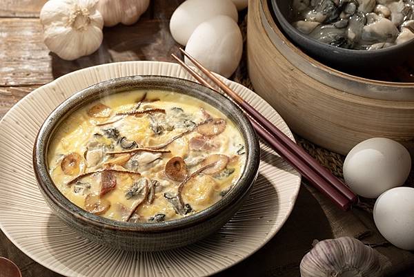 「梅子香芋蒸鴨」將芋頭鋪底,放上鴨肉與解膩的紫蘇梅醬一起蒸煮,過程中肉質精華滲入芋頭,最後將蒸鴨肉時所產生的醬汁芶芡澆淋後即可上桌,鹹、香、酸、甜,非常開胃。「懷舊雞蛋蒸鮮蚵」靈感來自老廣喜愛的「蒸禾蟲」,有鑑於台灣沒有禾蟲,改以台灣人喜愛的鮮蚵取代,並在蛋內加入炸蒜片、香菜梗、粉絲、廣東陳皮、油條等,水滾後小火蒸半小時,屬於滑嫩的口味,鮮蚵在口中爆漿鮮味。