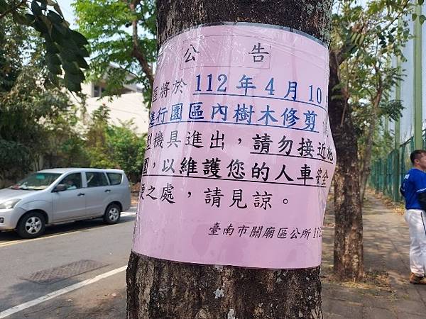 4月8號有熱心民眾通報台南市生態保育學會副總幹事黃蜀婷,於關廟區壘球場旁行道樹發現有「領角鴞」育雛,而且巢內還有雛鳥,又在行道樹幹上發現貼出公告要修剪旁邊的樹木,行道樹附近不能停車等,引起民眾關心,可能會造成「領角鴞」無法育雛等。