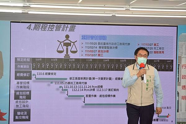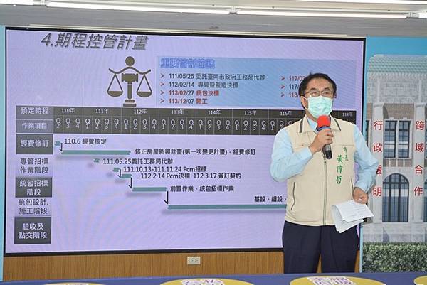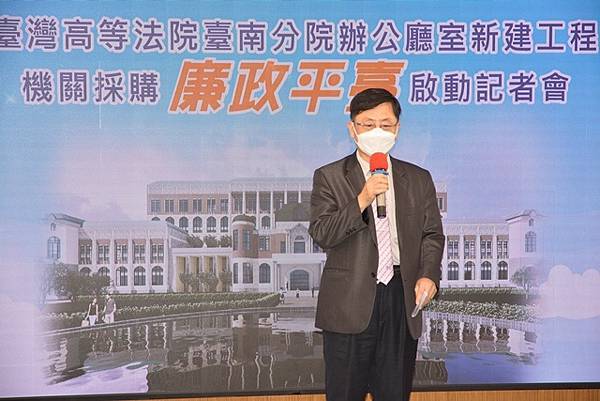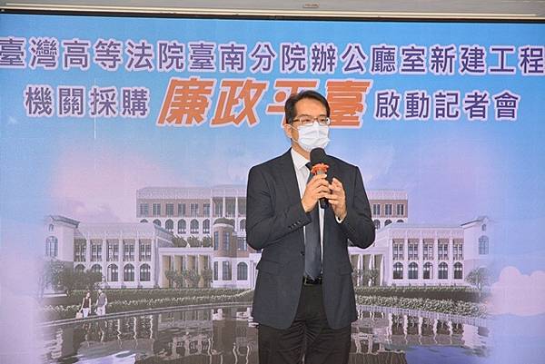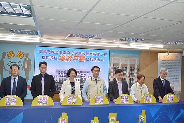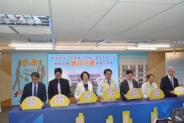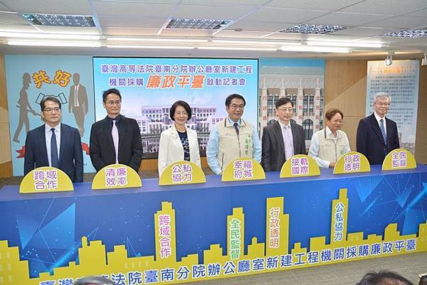 黃偉哲表示,南市府樂於協助推動臺南高分院辦公廳室新建工程,讓司法人員與民眾能擁有良好的使用環境。為了讓這項高達27億元的工程能順利進行,減少外力對公共工程的干擾,特別成立廉政平臺。這也是臺南市第六個機關採購廉政平臺。臺南市過去的5個廉政平臺,包括安平再生水廠、仁德再生水廠、七股科工區等重大公共工程。