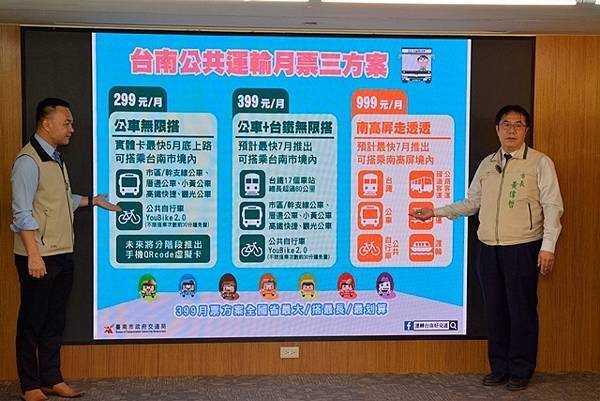 【柿子日報記者李玲/台南報導】今(12)日台南市長黃偉哲宣布眾所期盼的「台南公共運輸月票」規劃完成,「大台南公車無限搭299」方案可望在5月上路,同時更加碼推出「公車+台鐵無限搭399」方案,亦即原「大台南公車無限搭299」方案,每月再加價100元就能無限次搭乘境內台鐵,台南市通勤族直呼「這張票必買」、「太划算」。
