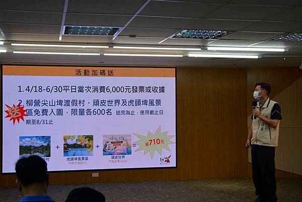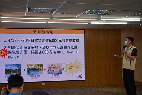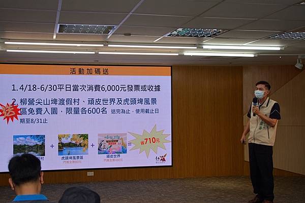 另外,觀光旅遊局也協調柳營尖山埤渡假村、頑皮世界及虎頭埤風景區,針對旅宿消費滿6,000元的旅客提供限量各600位免費入園優惠。黃偉哲市長樂見臺南觀光產業團結爭取商機,也請市府團隊持續將餅做大。