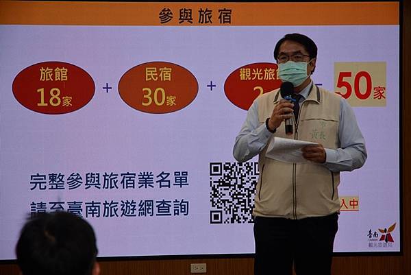 許多民宿提出包棟再贈送免費1晚住宿的優惠,提供旅客多元選擇,詳細名單請至臺南旅遊網查詢(網址:https://admin.twtainan.net/zh-tw/event/newsdetail/1630)。林國華代理局長補充說,預期這波優惠可持續帶動臺南觀光熱潮,各旅宿業配合的房型及房間數都有限,活動只到6月30日止,精打細算的消費者,就要趁這時候儘快訂房,趕快規劃出遊臺南的行程。