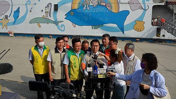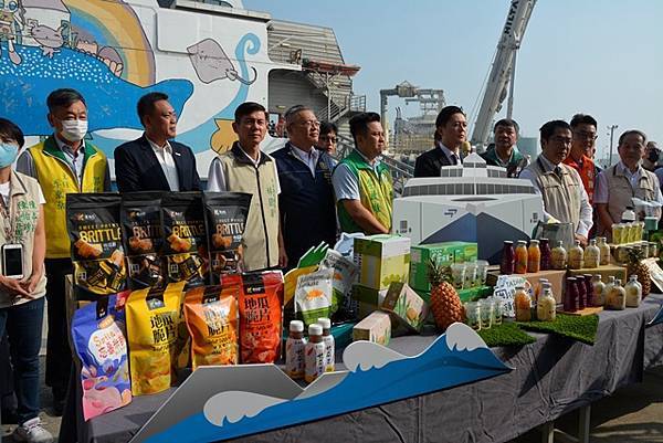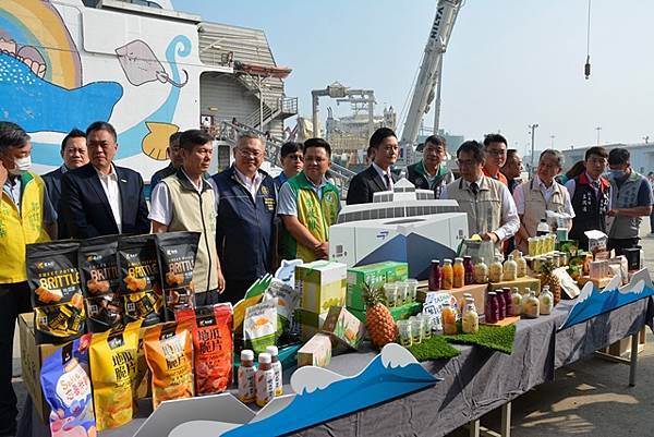 本市議員陳皇宇、李啓維、蔡筱薇、沈震東及各議員服務處代表亦出席開航活動表示重視與支持。市府特別準備在地農特產「鹽水帥哥番茄果乾」贈送給搭乘首航的旅客,慶祝南臺灣重啟這條「藍色公路」。