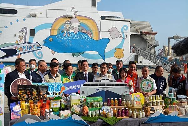 在安平港碼頭辦理開航活動,由臺南市黃偉哲市長與交通部航港局陳賓權副局長、臺灣港務股份有限公司安平港營運處林建宏資深處長、東聯航運洪郁航總經理、臺南市旅行商業同業公會蔡承鴻理事長。