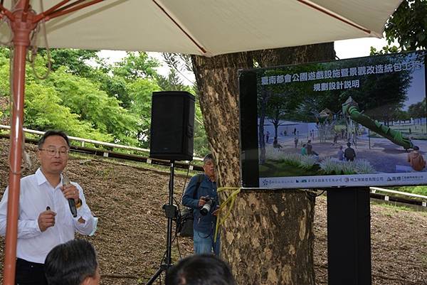 黃偉哲表示,台南都會公園的改造規劃過程中,感謝奇美博物館提供許多好想法,例如將奇美博物館的館藏或藝術文化概念融入到共融式公園的遊具及造型裡。未來落成後,公園能更與鄰居奇美博物館互相融合輝映,毫無違和感,成為地景的一部分。