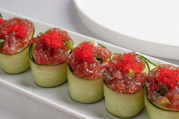 【柿子日報記者李玲/台南報導】每年4月至6月是鮪魚最肥美的季節。台南大員皇冠假日酒店元素餐廳自2023年5月17日至6月30日推出「鮪魚季」主題料理,近50道全新創意鮪魚料理輪流搶鱻登場,整條鮪魚從頭吃到尾。重頭戲是週六、週日限定的「鮪魚現切秀」,讓大家近距離欣賞游輝杰主廚手起刀落的精準分切鮪魚的俐落刀工,見證一場賞心悅目的切魚秀,視覺、味覺雙饗宴。煉.瓦日式餐廳推出鮪魚套餐,季節限定的美食,鮪魚控千萬不要錯過。