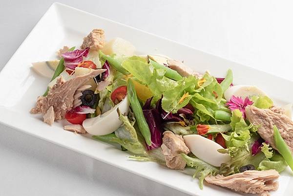 搶搭屏東鮪魚季列車,台南大員皇冠假日酒店元素餐廳自開業以來主打海鮮百匯吃到飽深受饕客喜愛,5/17起同步推出「鮪魚季」主題料理,游輝杰主廚精心研發近50道鮪魚創意料理,將於活動期間輪流登場,包括沙拉前菜、日式、法式、西式、中式與創意等,整條鮪魚可以從頭吃到尾。南法名菜尼斯沙拉中鮪魚的鮮味是關鍵靈魂,加上蛋、番茄、生菜與油醋醬汁,讓你品嘗色香味俱全的地中海特色料理。炙燒鮪魚玫瑰將鮪魚排成一朵盛開玫瑰的花狀,透過炙燒後表面變色就像雙色玫瑰一樣,可口動人,保留肉的軟嫩又能吃出鮪魚的鹹香風味。