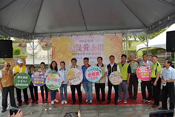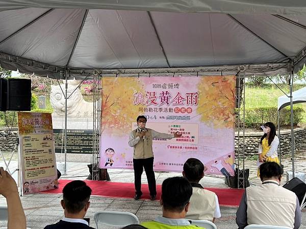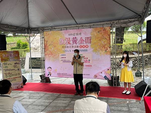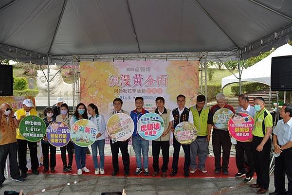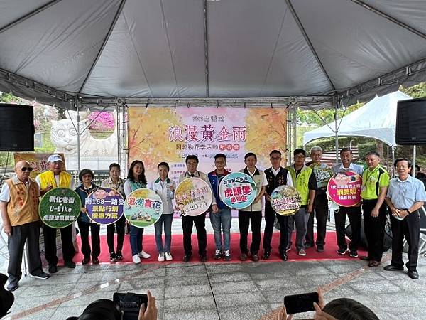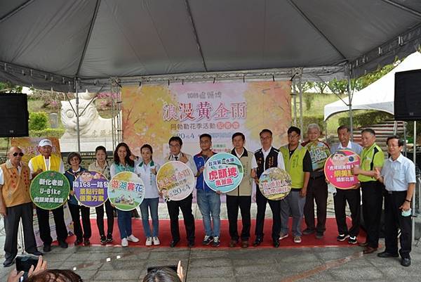 【柿子日報記者李玲/台南報導】阿勃勒花季是虎頭埤風景區重要的年度活動,有著「臺灣第一水庫」美稱的虎頭埤水庫,今(5/15)早在虎頭埤風景區迎賓廣場特別辦理「2023虎頭埤浪漫黃金雨阿勃勒花季」記者會。