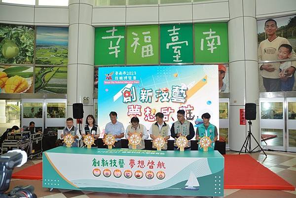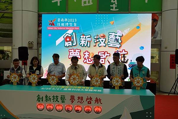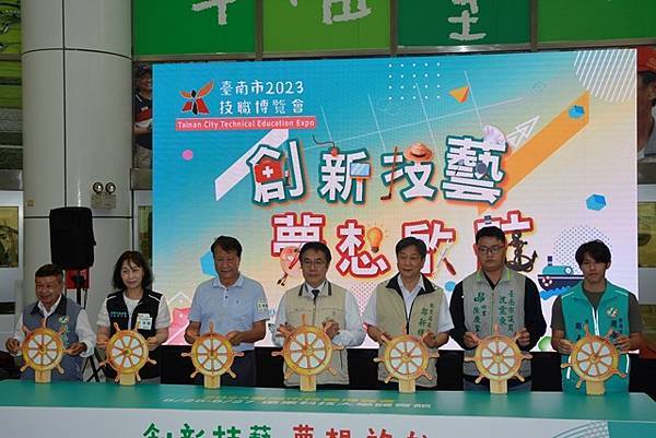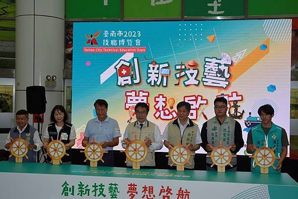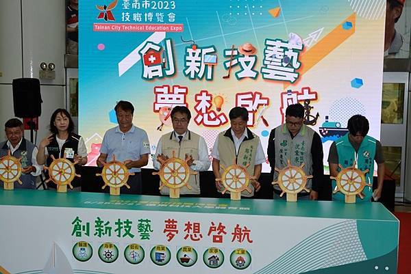 【柿子日報記者李玲/台南報導】為加強宣導技藝教育試探、協助國三生會考後志願選填,台南市教育局將於5月25至27日在遠東科技大學舉辦「創新技藝 夢想啟航」台南市2023技職博覽會,今(16)日舉行行前記者會,由台南市長黃偉哲與教育局長鄭新輝親自出席,以掌舵啟動儀式為活動揭開序幕,象徵率領台南的莘莘學子航向夢想的未來藍圖,議員李啟維也到場表示關心。