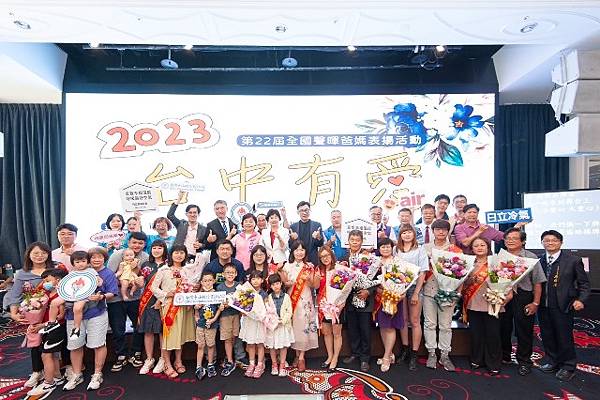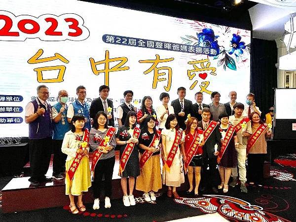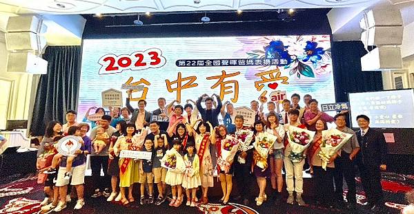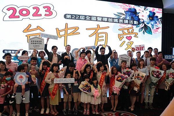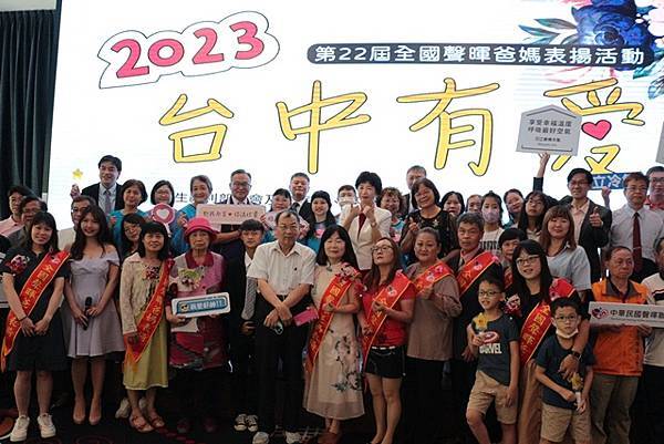 【柿子日報記者李玲/台南報導】第二十二屆全國聲暉爸媽表揚活動,五月二十七日以「2023台中有愛」為主題,在台中林皇宮墨緹絲廳舉行,由市長盧秀燕、中華民國聲暉聯合會理事長莫素娟、台中市聲暉協進會理事長姚中偉、台中山海屯聲暉協進會理事長謝玉玲,共同表揚十五位聲暉模範阿爸阿母。