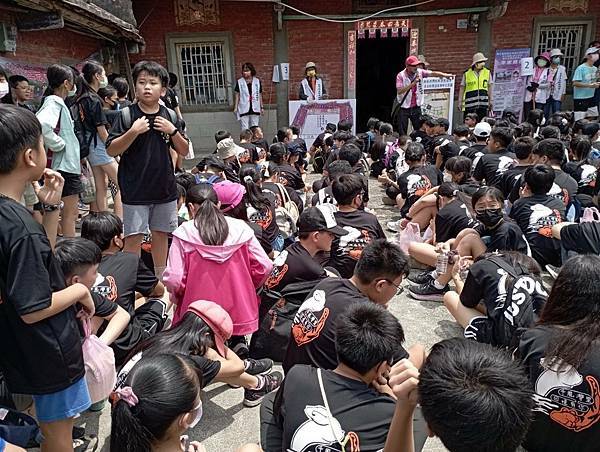 在這個特別的季節,一大早大家興高采烈在社區、學校裡,西灣社區呈現長青者領導,各類別達人於各專屬領域巡禮探索點的方式迎接解說服務,學生集結於大灣廣護宮廟前廣場,學校把學童分四分隊,全部人員約300位由社區據點長青者服務於四分隊帶領進入己開發340年的西灣社區體驗先人用淚血拼出來的成就,協會在各服務點以類別達人解說服務,最後全部集合於李家農舍前埕的溫馨情景,最後在協會認識社區點心文化的由來及品嚐成果,過程讓學童於巡禮中深入感受社區溫度,再創新的人生觀。