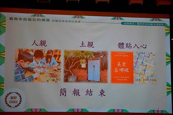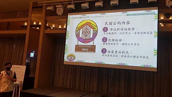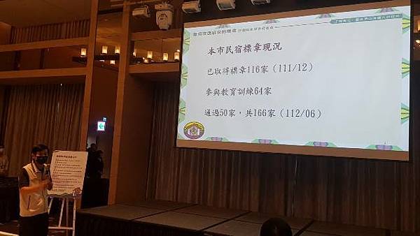 同時維護居民環境安寧及生活品質。本次通過公約標章評鑑民宿業者總共有50家,透過教育訓練及初次審核後,再請嘉南藥理大學餐旅管理系黃輝雄副教授進行實地抽測評鑑,總計已有166家民宿取得標章,另自我們推動民宿經營公約起,也帶動提升本市住宿率,近三年度的住宿率我們都取得六都第一的佳績,在此也呼籲更多民宿業者參與,讓整體民宿環境及獨有的品牌價值往更高的境界邁進。
