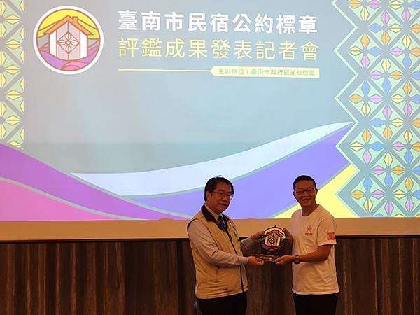 本次經現場實地評鑑後,共有50家合法民宿業者通過,並於今(9) 日假台南大員皇冠假日酒店宴會廳舉行評鑑成果發表會,現場由市長黃偉哲與林國華代理局長偕同臺南市民宿文化發展協會理事長柯凱文、臺南市旅館商業同業公會理事長吳俊泰、臺南市直轄市旅館商業同業公會名譽理事長謝信義及多位民意代表蒞臨共襄盛舉,由黃偉哲市長親自頒發公約標章,以表彰民宿業者自律及經營之用心。