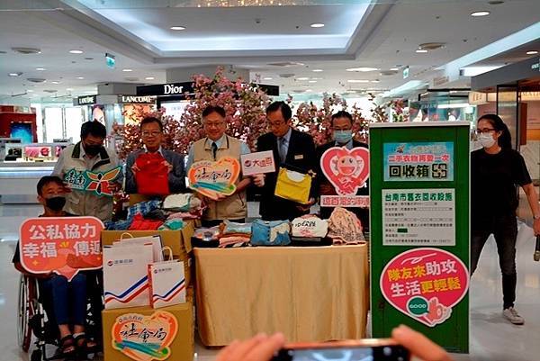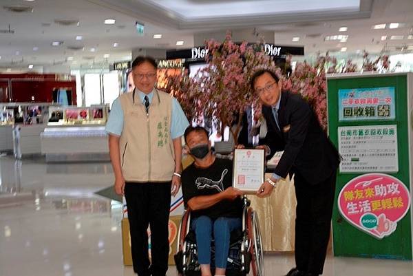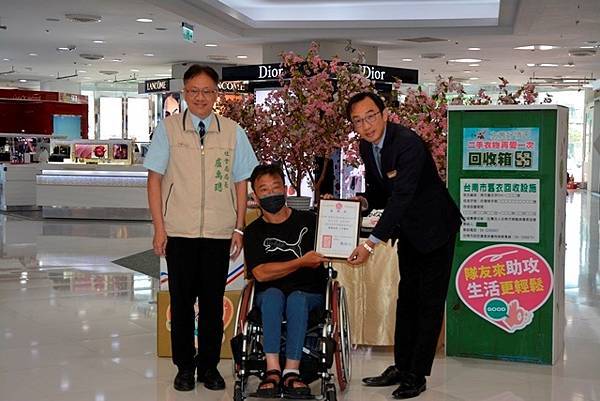 【柿子日報記者李玲/台南報導】臺南市政府社會局與台南大遠百及銀穗集團以實際行動支持環境永續,落實企業社會責任(ESG),發起「衣舊好情天二手衣物再愛一次」活動,募集200件二手衣物捐贈給身障團體義賣,挹注服務經費。今(9)日於台南大遠百1樓中島區辦理捐贈儀式,由台南大遠百徐聖彬副理代表捐贈給台南市脊髓損傷者協會由李峰明總幹事,社會局長盧禹璁到場見證,並致贈感謝狀給台南大遠百。