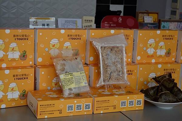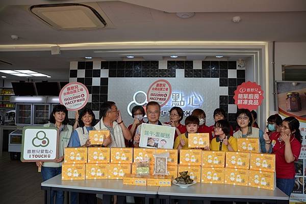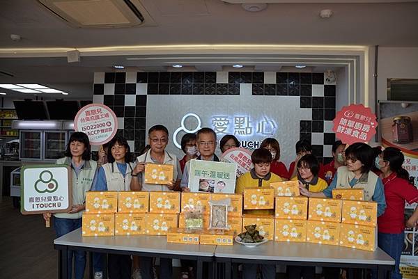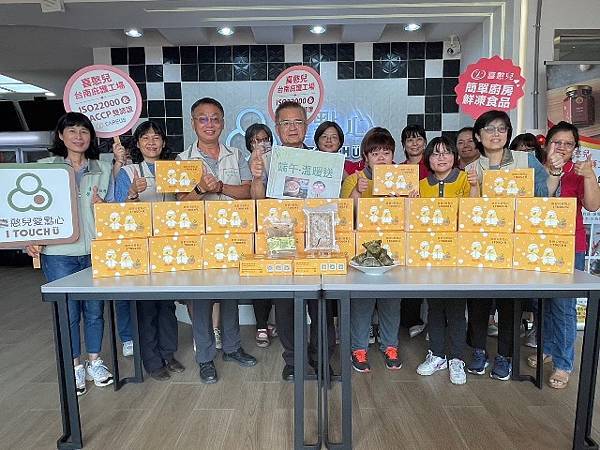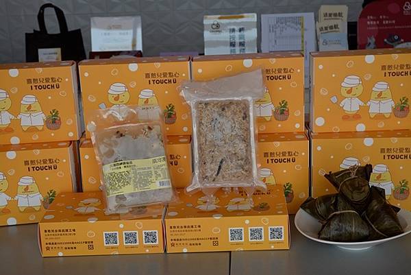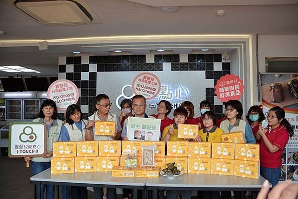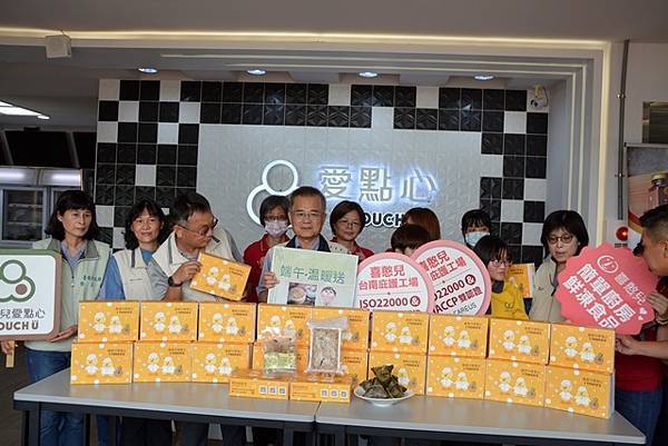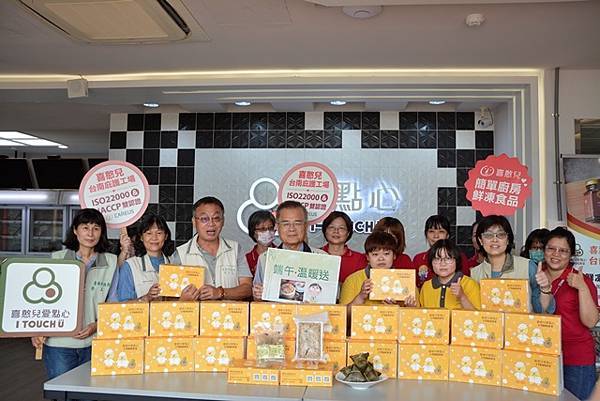 喜憨兒基金會於2017年成立『喜憨兒 愛點心 I TOUCH-U』,由憨兒們參與製作鮮凍食品,期盼他們透過學習技能進而能自立自主,此次發送的物資包含喜憨兒台南庇護工場,與全家通路合作募集社會善心人士認捐的鮮凍食品「端午•溫暖送」組合,內容物有蔬食油飯搭配元氣排骨四神湯,以及台南市餐飲業產業工會郭國仁理事長捐贈的粽子,發送對象包含失業勞工、身心障礙者及遭受職災的弱勢勞工家庭等,在勞工局的細心安排之下,兵分多路,發送遍及本巿20多區。