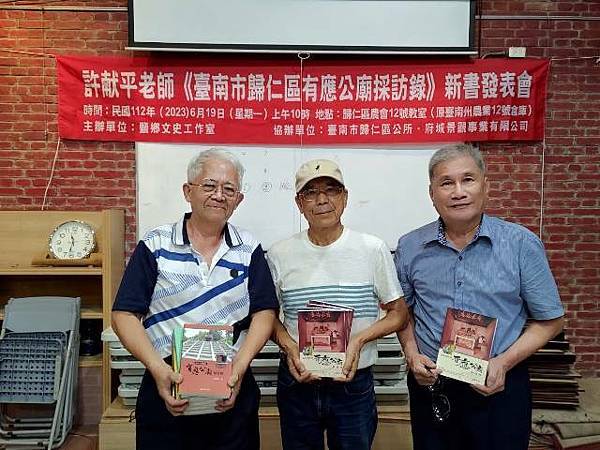 【柿子日報記者李玲/台南報導】有「神鬼行者」封號的許献平老師最新力作-《臺南市歸仁區有應公廟採訪錄》,由鹽鄉文史工作室主辦,歸仁區公所、府城景觀事業有限公司協辦,19日上午10時在歸仁區農會12號教室舉辦新書發表會,歸仁區長朱雅宏等人到場肯定許献平老師的努力創作。
