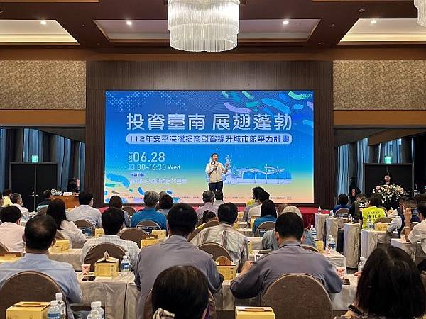【柿子日報記者李玲/台南報導】為行銷宣傳臺南投資環境優勢、安平港未來發展與推廣通關服務,市府經發局今 (28) 日於福爾摩沙遊艇酒店,舉辦「投資臺南 展翅蓬勃」招商說明會暨企業永續交流活動。