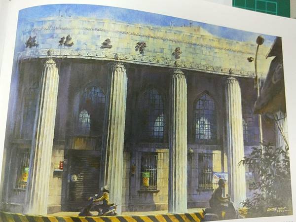 而陳俊男的來去之間-台南土地銀行作品,所展現這座西洋建築在府城迄立多年,畫者用天空的鈷藍融入了建築體本身,好像時空與建築物消融在一起,任憑摩托車騎士的東來西去,天天在此與朝陽彼此呼喚。