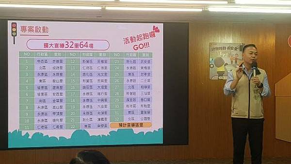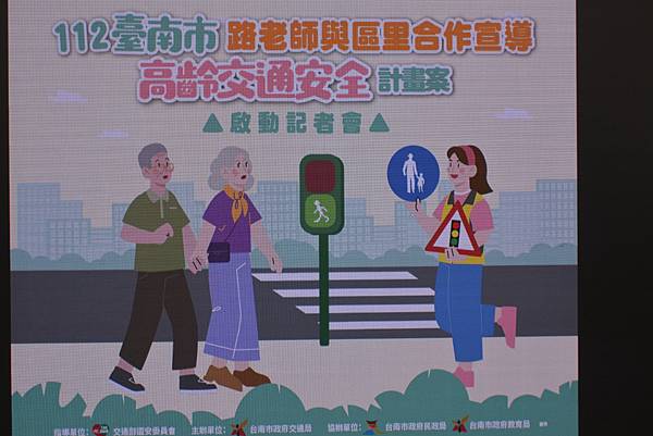 市長黃偉哲表示,高齡長者因身心功能老化,是交通安全的高危險群,指示市府道安團隊應透過各管道加強對高齡長者進行道安宣導,目前持續結合民政、衛福、宮廟等管道,利用社區共餐、區里文康出遊活動、行動醫院下鄉等機會持續深入社區、以互動方式搭配實際案例分析傳達正確交通安全觀念。此外,市府交通局今年度特別爭取中央經費並與民政、教育系統合作,以潛在高事故風險鄰里,安排合格「路老師」宣導交通安全。
