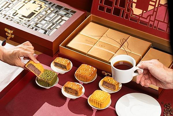 「柚香檸檬」以新鮮柚皮做成果乾後,糖漬加入白鳳豆沙與檸檬汁,保留其完整風味,酸中帶甜的迷人香氣,清新感十足。「酒釀桂圓」是餅皮包進了酒釀桂圓餡,吃得到桂圓果肉,風味香濃,令人回味無窮。「紅豆牛奶」屬於大人小孩都喜愛的口味,代表著思念與感情,甜而不膩的內餡,還吃得到紅豆顆粒香綿。「碧螺春芭樂」帶點茶味跟台灣特有水果香氣的口味。「鐵觀音」以鐵觀音茶粉加入白鳳豆沙餡內,一口品嚐茶香清新,搭配甜香豆沙,綿密回甘特別舒爽。延續去年大受好評的濾掛式咖啡4包,精選100%阿拉比卡咖啡研磨成粉,屬於中度烘培,在醇厚口感與酸度中取得平衡,月餅配上咖啡,更添中西融合的風味。
