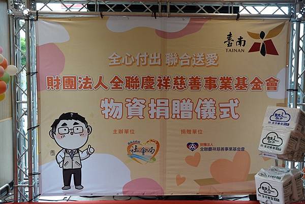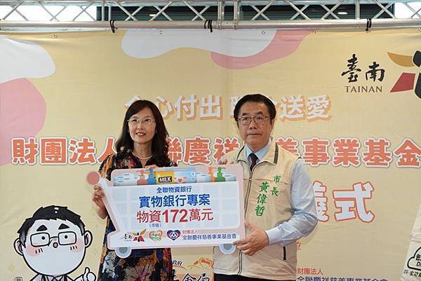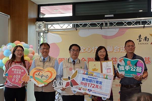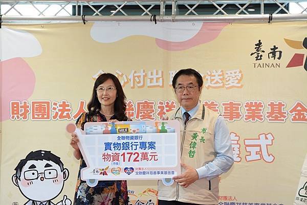社會局盧禹璁局長表示,臺南市實物銀行可為經濟弱勢或遭遇急難的家庭提供及時且適切的緊急生活物資協助,截至目前全市已建置實物愛心銀行5處委辦實體店面、9處合作實體店面及22處實物分站,累計有41萬3,519人次受益。財團法人全聯慶祥慈善事業基金會積極推動各項公益專案及活動,如急難救助、物資捐輸等。