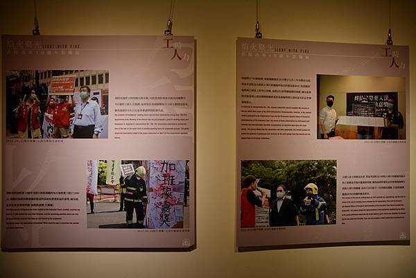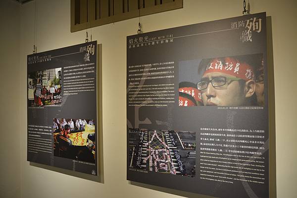 展覽以消防員不同面向之議題區分為四大展區,分別為「人力工時、業務濫用、基層民主、消防殉職」,現場備有導覽手冊,內文由本會理事長、創會會員、顧問與會員代表所撰,以文字和影像傳達現職消防員與組織者真實的心路感觸,在意義重大的10週年訴說創會以來的不易及奮鬥之程。