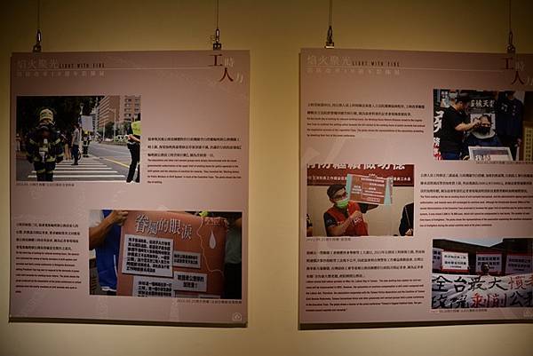 本次首度以影像展呈現10年以來基層消防員爭取工作權益的紀錄,策展概念以消防員工作中密切相關的「火」為題,取名為「焰火聚光」,象徵十年前後制度尚未完善的黑暗中,基層團結凝聚出改變的力量是協會組成最重要的核心,不論是面對殉職議題的黑夜抑或是打火時黑煙滿佈的空間,「聚」所代表的涵義,創造出漫夜的曦光開展的動源。期盼透過向社會各界展出的形式,使大眾更加了解消防員於10年間制度革變的工作困境與實態。
