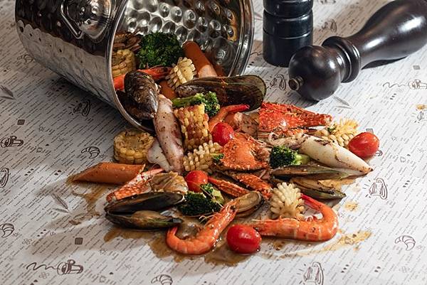 客人入座後,很有儀式感的將海鮮倒在桌上,讓人驚呼,象徵漁獲豐收之意,客人穿上小圍裙、戴上手套,豪氣的用手抓取海鮮大口吃,狂野奔放,大呼過癮。「手抓海鮮」有螃蟹、白蝦、淡菜、透抽、德式香腸與時蔬等,以紐奧良香料和辣椒粉調味,吸飽湯汁的海鮮食材吃起來非常涮嘴、開胃。暑假搶攻親子客,推出「兒童最大」,就是要讓孩子們無憂無慮開心Fun暑假,凡一位成人用餐還可攜帶一位6-11歲兒童免費吃到飽,整個餐廳都是孩子的饗樂天堂。