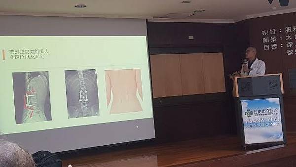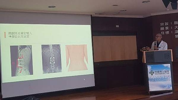 許恆睿醫師指出,徐小妹的骨折變形雖然嚴重,但未合併出現血塊,且無嚴重的神經功能缺損,,故採經皮微創骨釘植入復位固定術,在背部兩側各劃了兩個2~2.5公分的傷口,在骨折處相鄰的上下節脊椎骨植入骨釘,且利用器械進行椎體復位固定,術中沒有大量失血也不需破壞肌肉,減少背部肌肉的創傷,更可降低手術中失血及感染率、縮短住院天數、減少手術後腰背痠痛的機會。