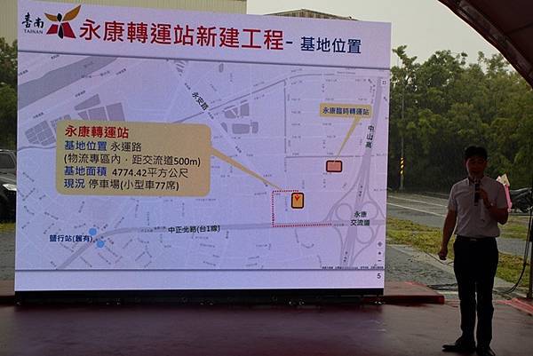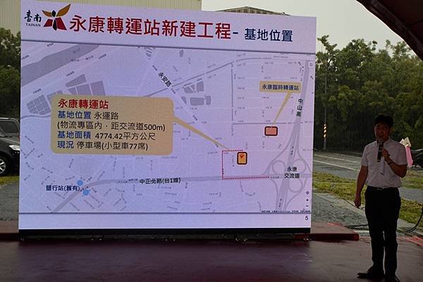 交通局長王銘德表示,未來「永康轉運站」位於永康物流轉運轉區內,近永運路、永安路口,較現行臨時站離交流道更近、更省時,規劃8個國道客運月台,另有市區公車路邊停靠區及近百席機車停車位等,臨近亦有汽機車停車場,無論利用公共運輸前來或停車轉乘都十分便利。