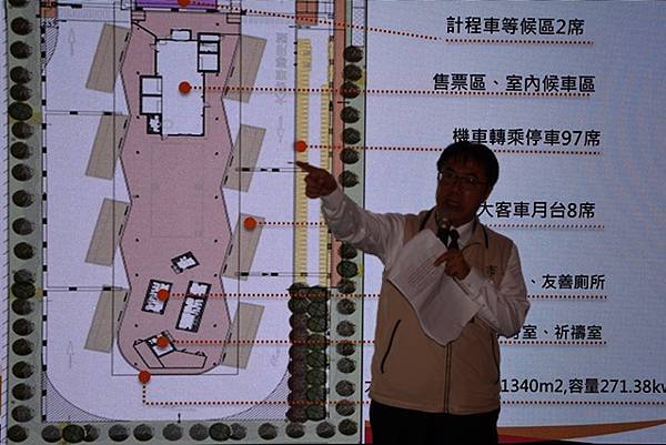 局長王銘德指出,「永康轉運站」基地面積約0.5公頃,但受限土地使用規定,能興建的主體建築面積室內約231坪,但仍規劃舒適的售票和候車空間,未來將委外營運,也可望有簡易賣店。