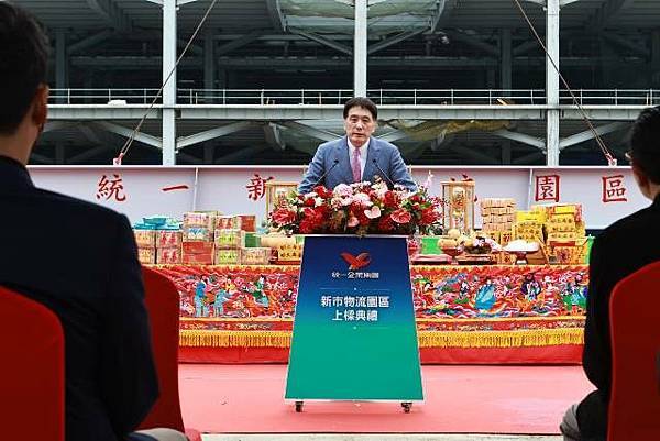 【柿子日報記者李玲/台南報導】統一企業(1216)100%持有之統流開發公司,於台南市新市區樹谷園區籌建新市物流園區,營建與設備投資金額包含土地高達100億元。在施工品質嚴格把關下,興建工程進行順利,目前主結構體工程已完成,於2023年8月14日星期一早上十點吉時,由羅智先董事長帶領關係企業主管與開發團隊,舉辦上樑祈福典禮,祈求開發營運順利推展。
