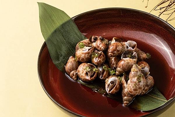 由於海鱺本身屬於Q脆有嚼勁、味道又鮮甜,所以切成0.2公分的薄片,是最佳的賞味方式,入口時更彈牙順口。「炙燒海鱺握壽司」表面刷上一層熬製3天的照燒醬,再加以炙燒,多一層甜、香、脆的焦香口感。「海鱺魚柚庵燒」以清酒、味醂、醬油的黃金比例,配上一點柚皮提味的醬料,醃製海鱺約30分鐘,烤出表面帶著焦糖的香氣。「鳳螺有馬煮」將活鳳螺先用清酒一起煮熟,再以醬油、清酒等材料調配出的濃味醬汁,加入日本進口有馬町盛產的山椒果實,將鳳螺醃漬一天入味,淺嘗一口,醬汁香甜濃郁,配上醒胃帶辛的原粒山椒,跟鳳螺的海味分外融和。