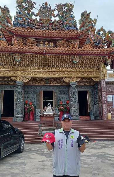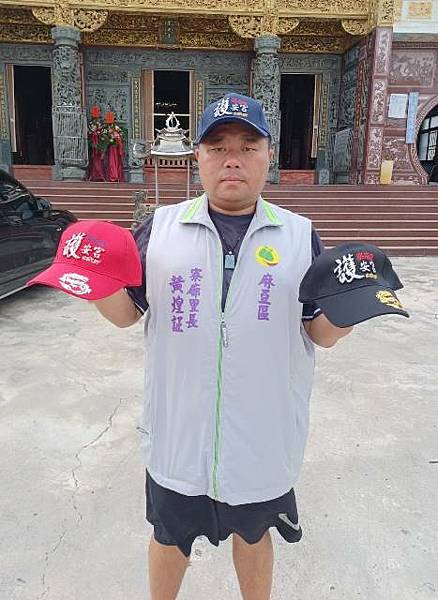 圖為寮廍里長黃煌証表示只要捐款給生病里民就可以獲贈限量版護安宮的帽子。