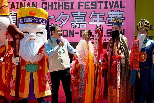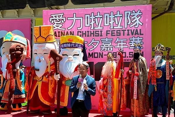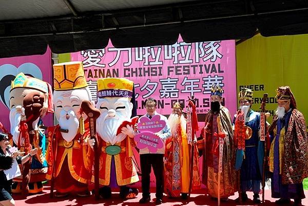 台南市市長黃偉哲指出,文學大師葉石濤曾說,臺南是一個適合工作、戀愛、過生活的城市,不過談戀愛要人也要神,人要努力去追,神要來幫忙牽成好姻緣,本次活動商請台南7大主要宮廟的月老神君一起來,再加上桃花女,共7+1位神明,希望助大家締成美好姻緣。