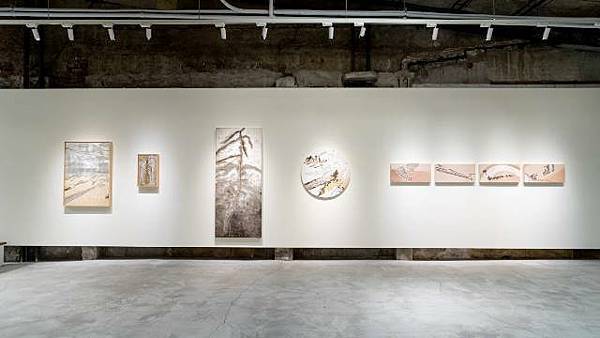 東亞的書畫用紙,表面光潔,輕薄且韌,雖不適合承載厚重的顏料層,卻擅於立即且長久地記錄紙面上的各種活動痕跡。日本製的畫用銀箔,因其厚度極薄,故在張貼的過程中,常會因為如呼吸般的微弱氣流而起皺,且又容易因氧化而變色,形成筆具與顏料無法創造出的各種特殊痕跡與多變的色彩。此次展出〈場景〉系列,即在書畫用紙上,透過銀箔及硫化變色技法,描繪紙上光影變化的作品。光影飄忽,銀箔鈍實。以顏料薄染日常一隅,以銀箔畫光影,則使虛實對易,頗有輕重倒置之趣。