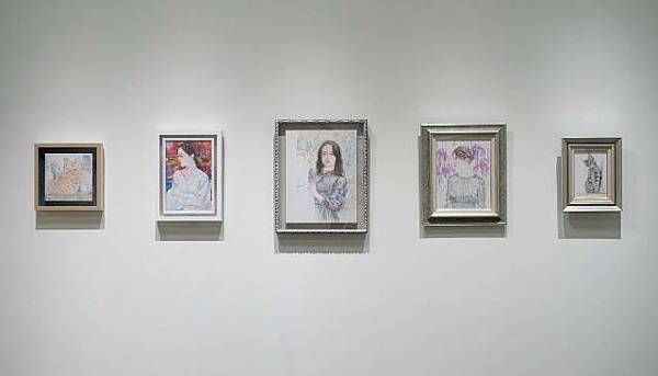 新家未來(Miku Niinomi)的畫作,多以女性人物或貓作為主題。此次展出的〈潤す雫〉(Dew that enriches)、〈陽光〉(light from the sun),皆以半身的女性人物作為畫面描繪的重心。人物以纖細、緻密、流暢且帶有彈性的線條,勾勒出精確的素描輪廓,並以彷如彩妝般的輕柔染法,為肌膚敷上極淡薄的色彩,只在眼周、口唇、指尖處略施朱,予人潔淨無瑕、輕透無垢的印象。與肌膚相對比,頭髮則以略濃重的色彩處理,但或為了避免單調厚重,故在棕、黑之間略挾帶較為鮮豔的紅、藍色,以製造濕潤的光澤感。