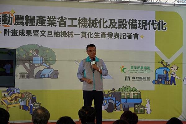 【柿子日報記者李玲/台南報導】農業部農糧署本(28)日於臺南市麻豆區辦理「全面推動農糧產業省工機械化及設備現代化計畫成果記者會」,由陳部長吉仲主持,展現近年農業機械化政策在紓解農村缺工、提升國內農產業競爭力、促進農業淨零循環及增進糧食自給率的成果。適逢文旦產季,現場同時展示文旦柚生產到銷售一貫化的各式機械,還有近年積極推廣農民種植高粱的整地、播種、採收等機器,引導農民使用自動化機具改變經營模式,促進產業轉型升級。